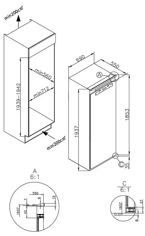 | Габариты ниши для встраивания (ВхШхГ) (см) | 194.2х71.2х56 |