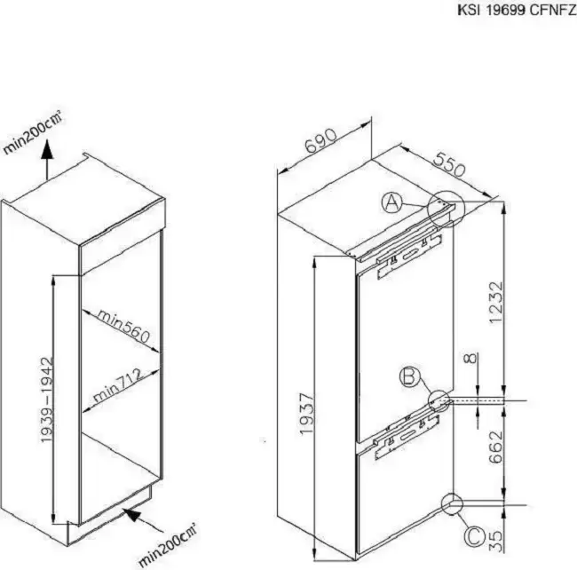 Встраиваемый холодильник Korting KSI 19699 CFNFZ