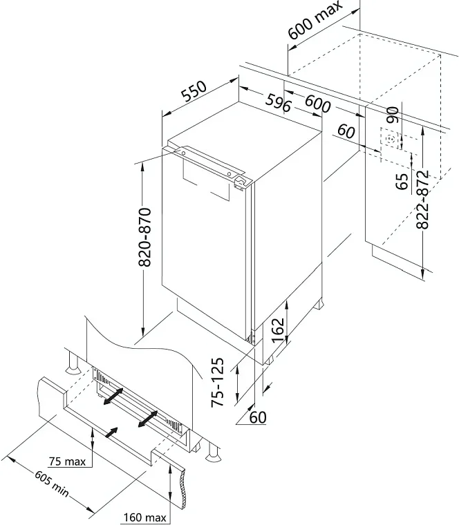 | Габариты ниши для встраивания (ВхШхГ) (см) | 82.2-87.2х60х55 |