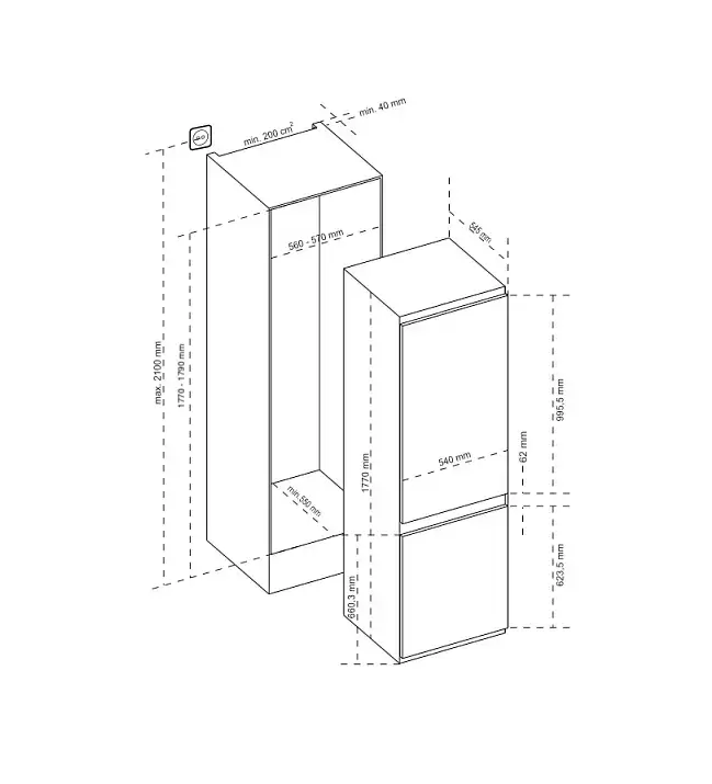 Тип: встраиваемый. Вид: холодильник без морозильника.
