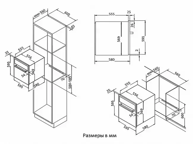 | Размеры ниши для встраивания, ВхШхГ (см) | 60х56х56 |