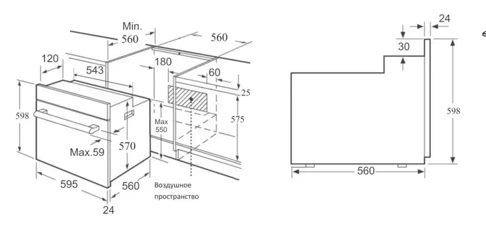 | Размеры ниши для встраивания, ВхШхГ (см) | 58.3х56х55 |