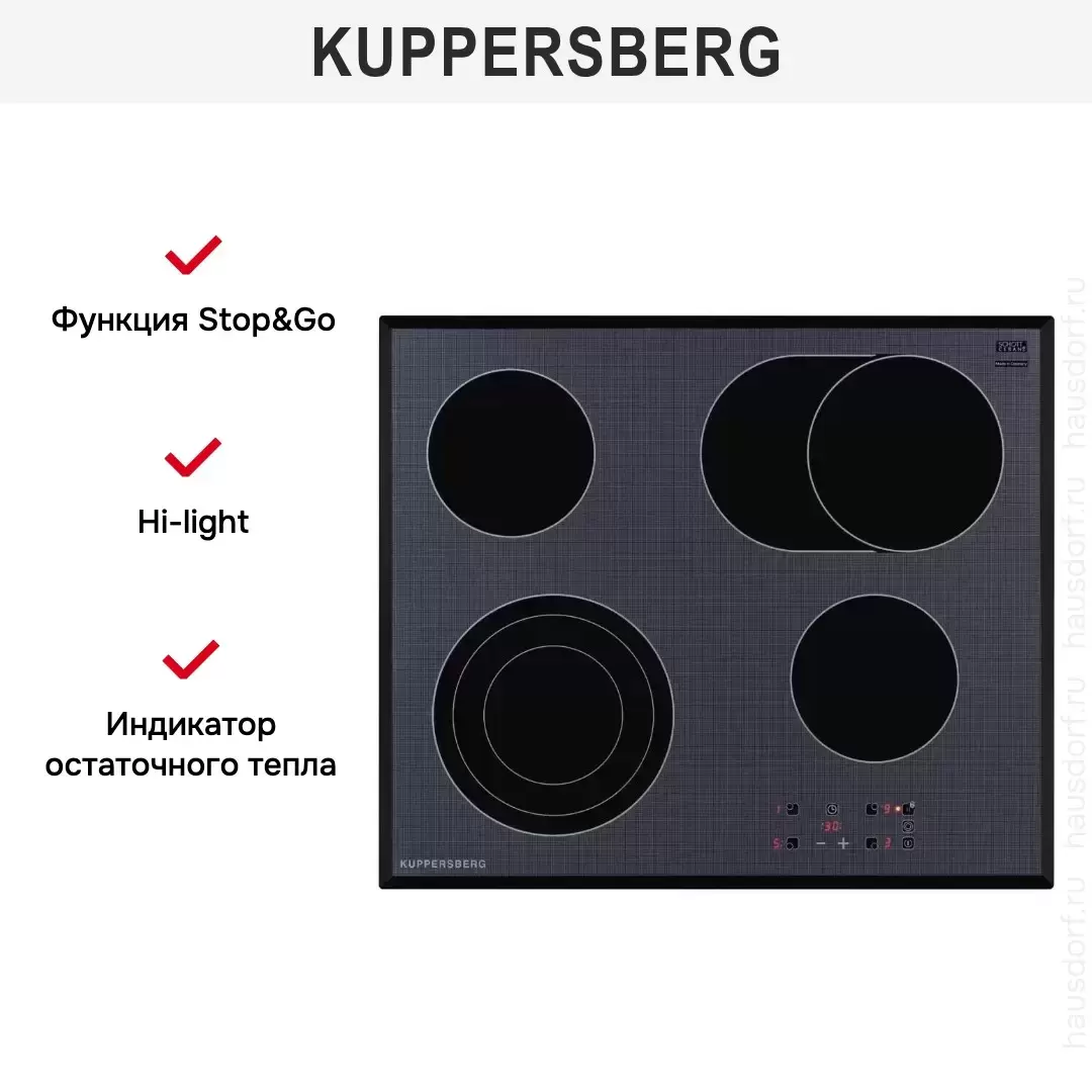 Варочная панель Kuppersberg ESO 629 F — варочная панель класса люкс, немецкого производства, сочетающая надёжность и передовые технологии Kuppersberg.