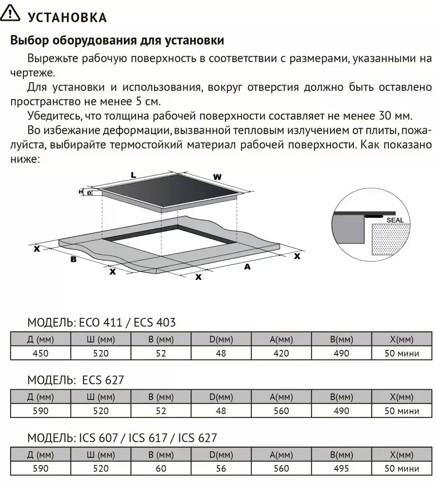| Размеры ниши для встраивания (Ш х Г), см | 56х49.5 |