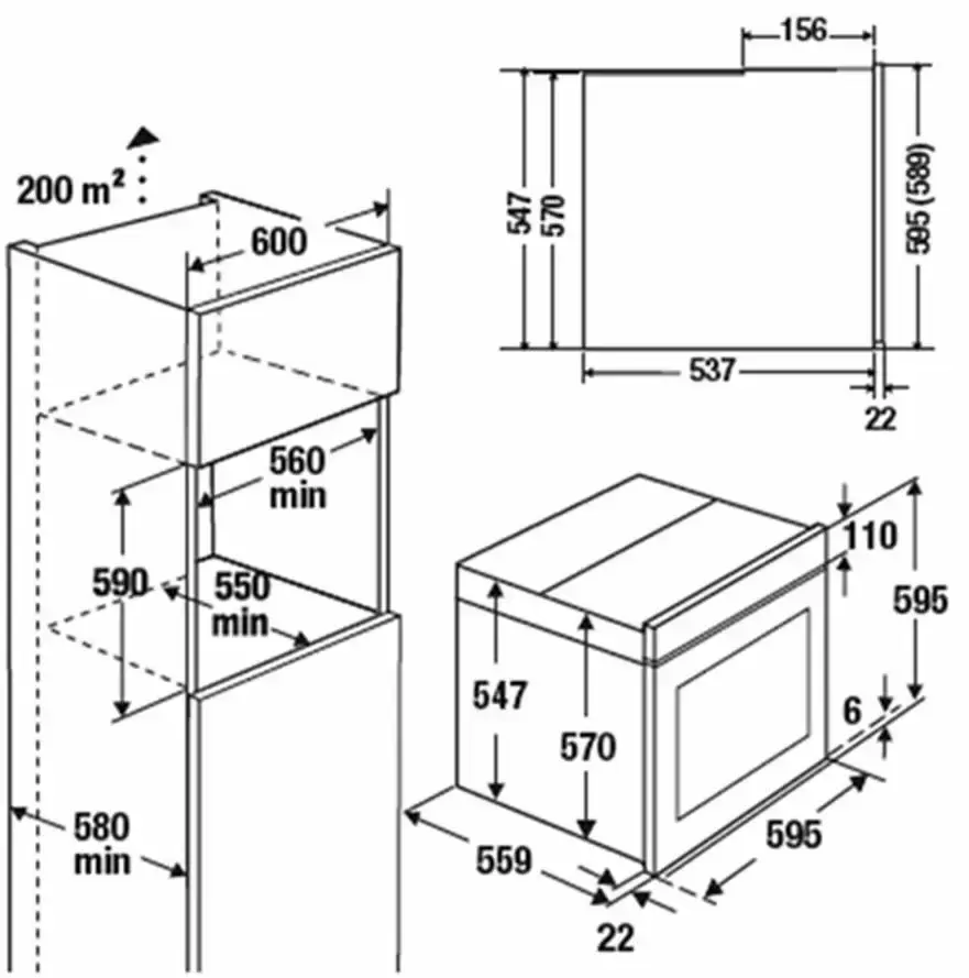 | Размеры ниши для встраивания, ВхШхГ (см) | 59х56х55 |