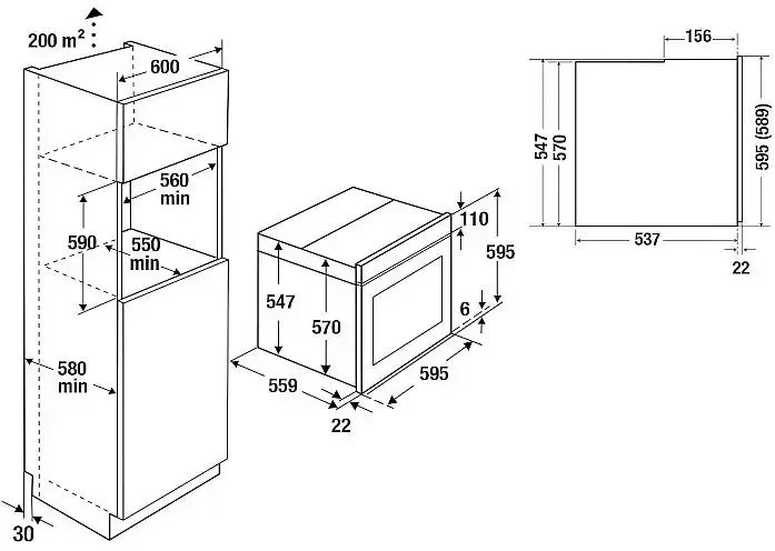 | Размеры ниши для встраивания, ВхШхГ (см) | 59х56х55 |