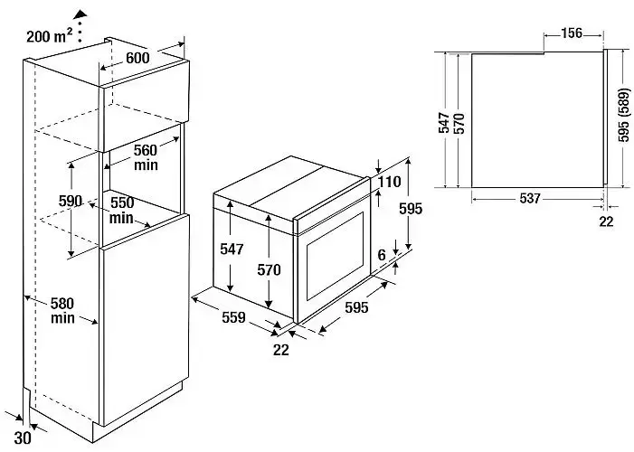 | Размеры ниши для встраивания, ВхШхГ (см) | 59х56х55 |