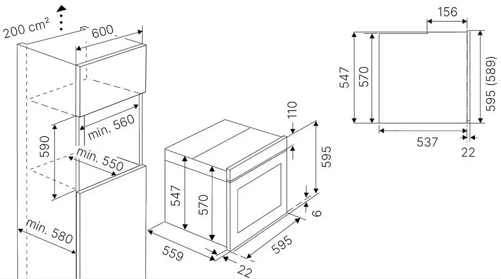 | Размеры ниши для встраивания, ВхШхГ (см) | 59х56х55 |