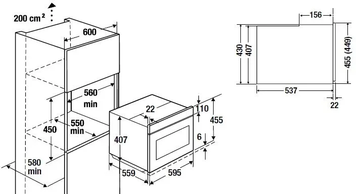 | Размеры ниши для встраивания, ВхШхГ (см) | 55x56x45 |