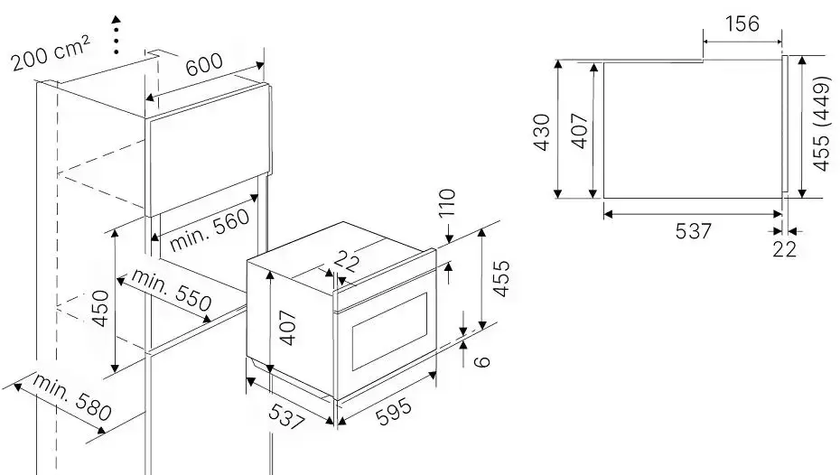 | Размеры ниши для встраивания, ВхШхГ (см) | 45х56х55 |