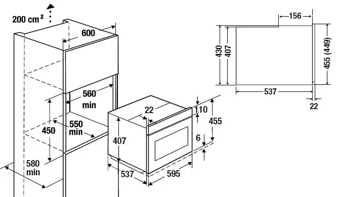 | Размеры ниши для встраивания (ВxШxГ) (cм) | 45x56x55 |