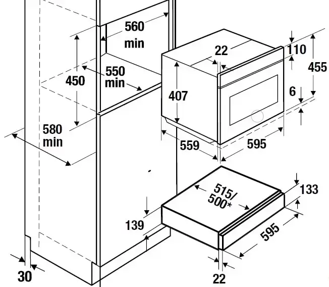 | Габариты ниши для встраивания (ВхШхГ) (см) | 59.5x56х55 (включая прибор высотой 45 см) |