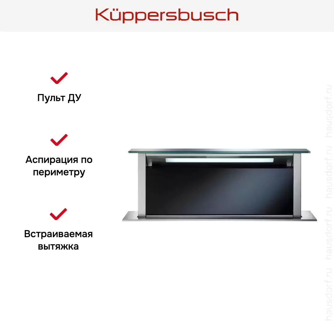 Встраиваемая в столешницу вытяжка Kuppersbusch DD 9840.0 S — флагманская модель в линейке Küppersbusch (немецкого производства), кухонная вытяжка премиального сегмента.