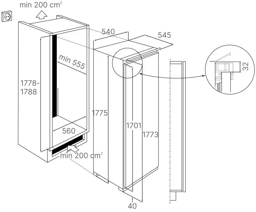 Тип: встраиваемый. Вид: холодильник без морозильника.