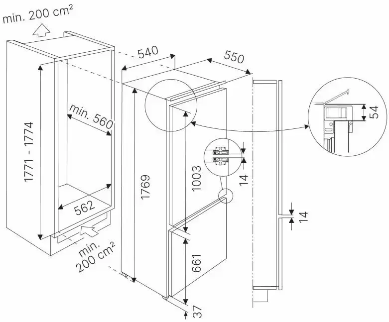 Тип: встраиваемый. Вид: холодильник с морозильником.