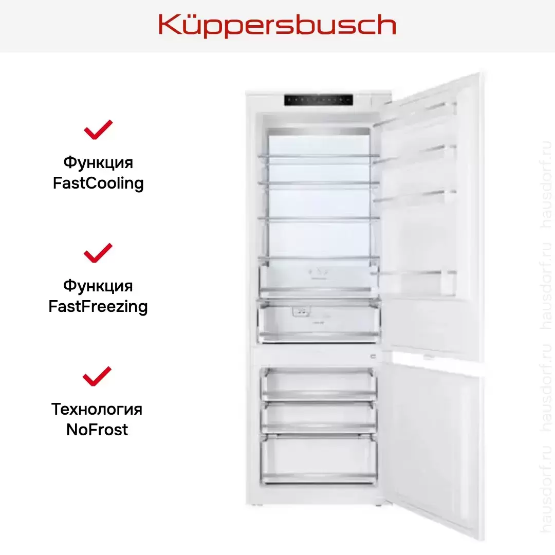 Встраиваемый холодильник Kuppersbusch FKGF 9855.0i — флагманская модель в линейке Küppersbusch (немецкого производства), холодильник премиального сегмента.