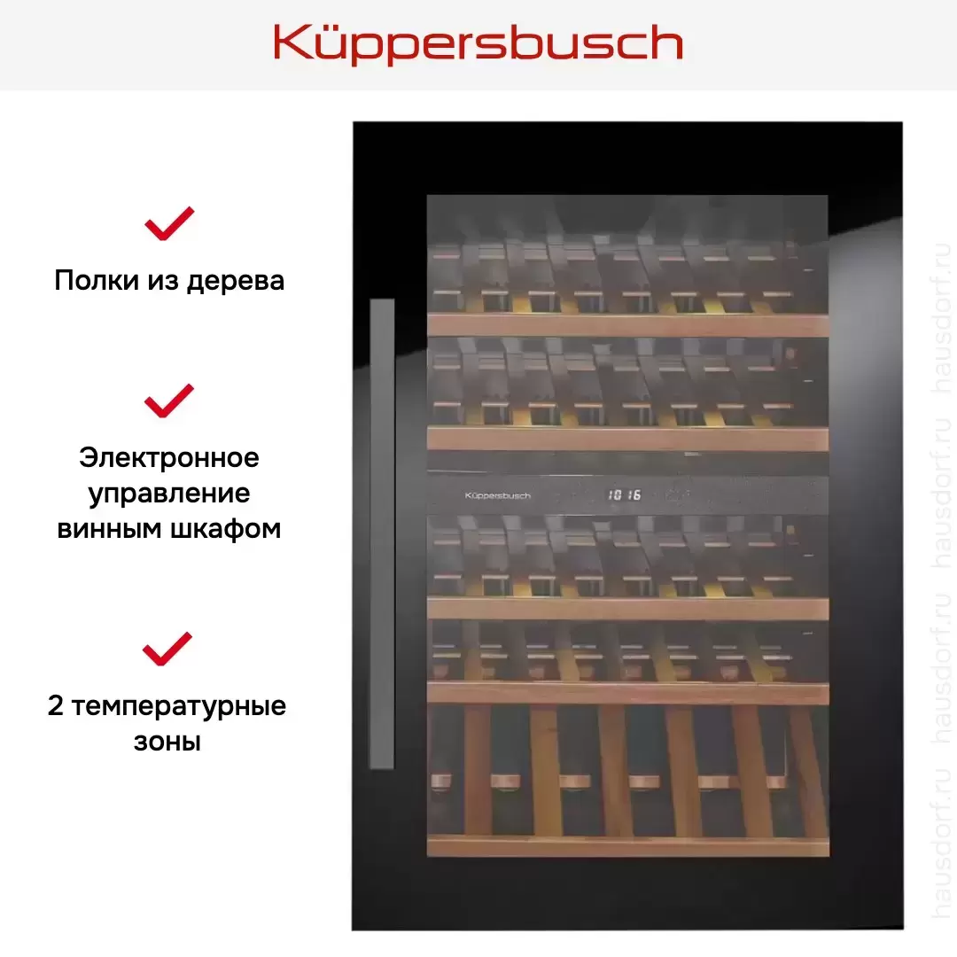 | Дополнительные параметры | Панель управления с нажимными кнопками Электронная индикация температуры Деревянная полка для демонстрации под углом 45°: 1 2 лампы по 0,2 Вт в каждой температурной зоне Ручка: серебристая |