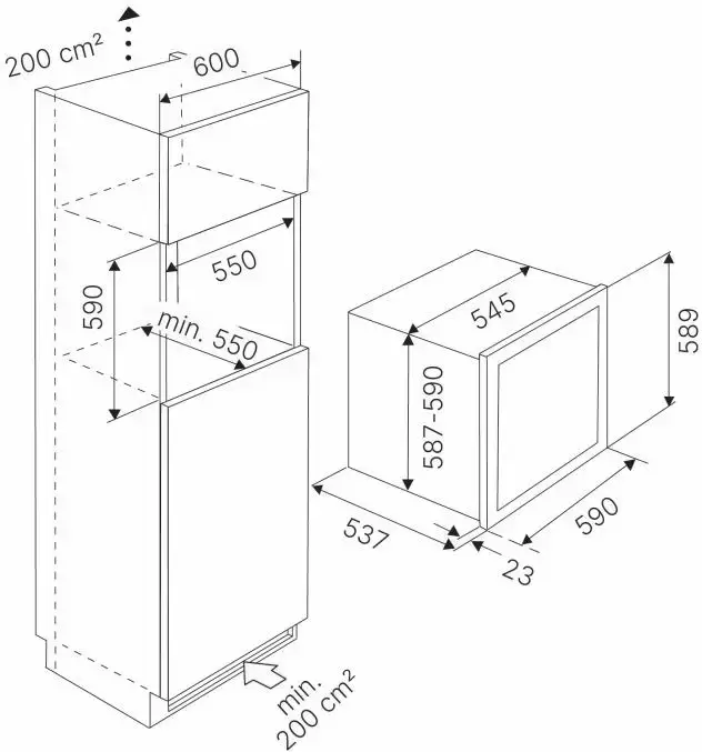 | Габариты ниши для встраивания, ВхШхГ (см) | 59х55х55 |