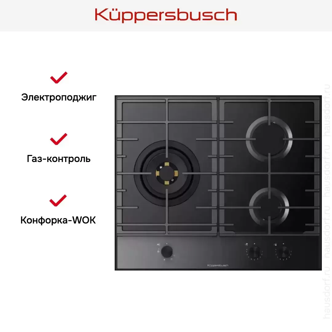 Газовая варочная панель Kuppersbusch KG 6853.0 SE-E5 — флагманская модель в линейке Küppersbusch (немецкого производства), варочная панель премиум-класса.