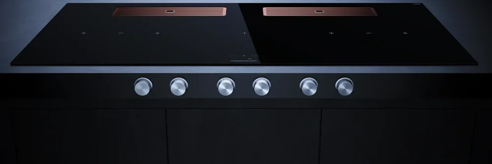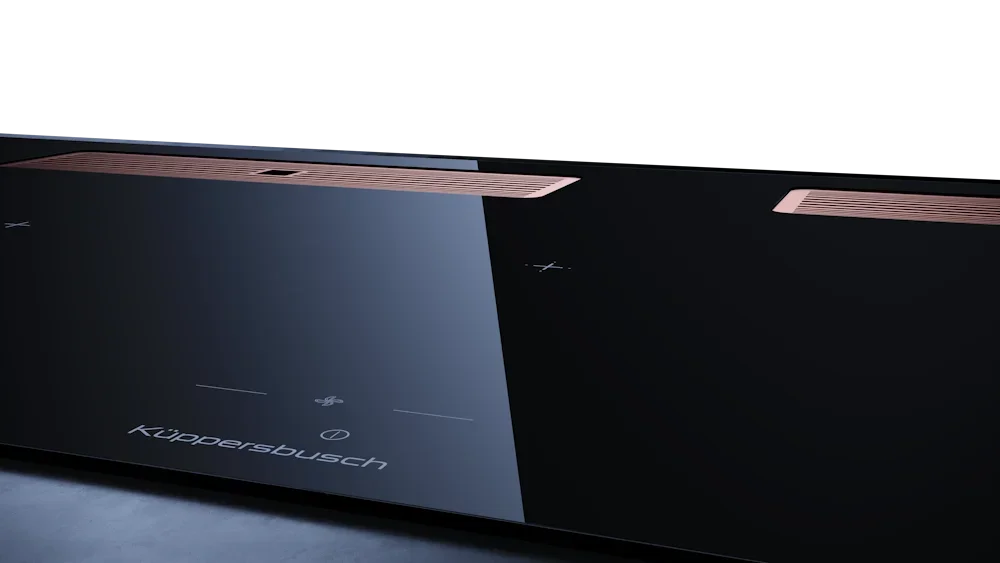 Индукционная варочная поверхность с вытяжкой Kuppersbusch KMI 12850.0 SR-E Copper — варочная панель класса люкс, немецкого производства, сочетающая надёжность и передовые технологии Küppersbusch.