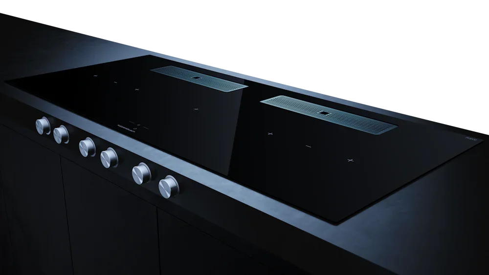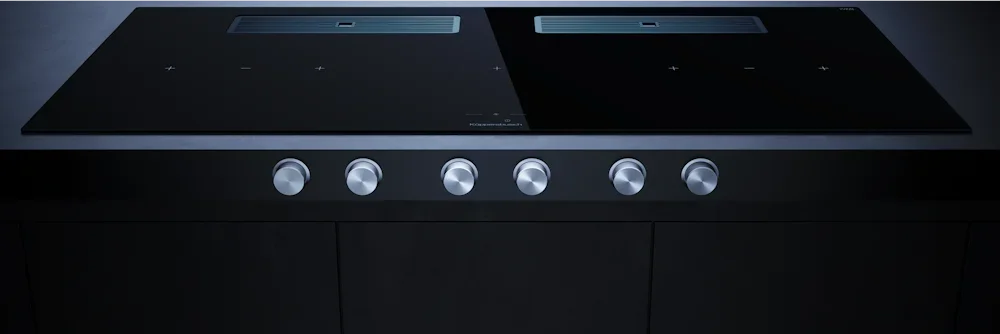 Индукционная варочная поверхность с вытяжкой Kuppersbusch KMI 12850.0 SR-E Stainless steel — варочная панель класса люкс от немецкого производителя Küppersbusch.