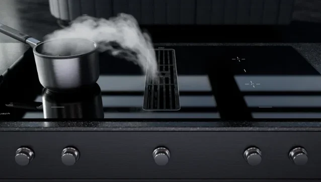 Индукционная варочная поверхность с вытяжкой Kuppersbusch KMI 12850.0 SR-S Copper — варочная панель премиального сегмента, немецкого производства, сочетающая надёжность и передовые технологии Küppersbusch.
