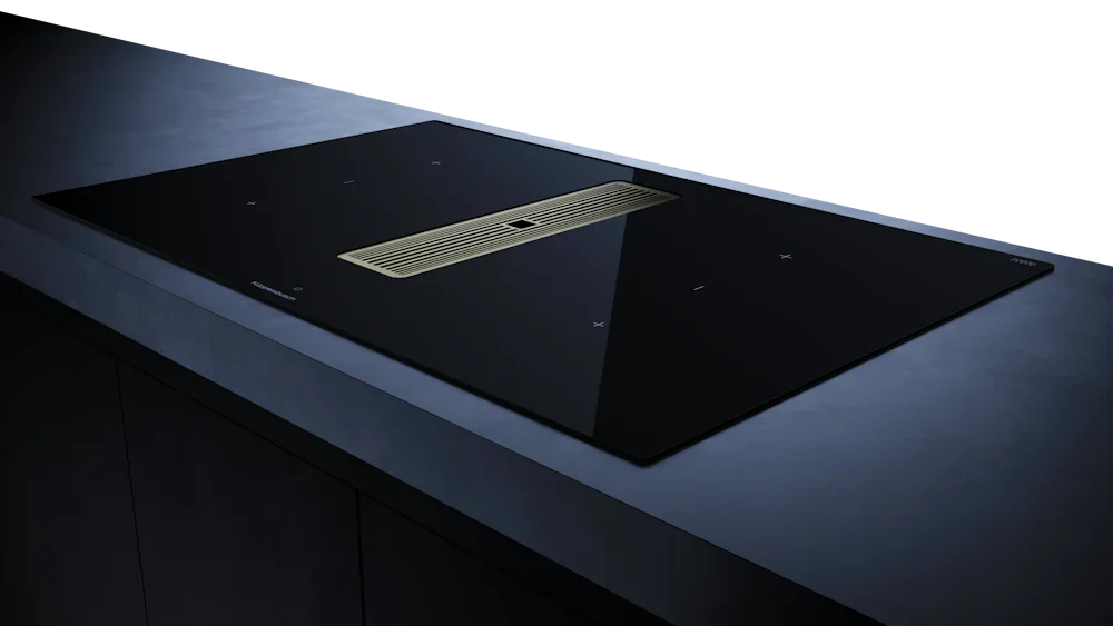 Индукционная варочная панель с вытяжкой Kuppersbusch KMI 8350.0 SR Gold — варочная панель класса люкс от немецкого производителя Küppersbusch.
