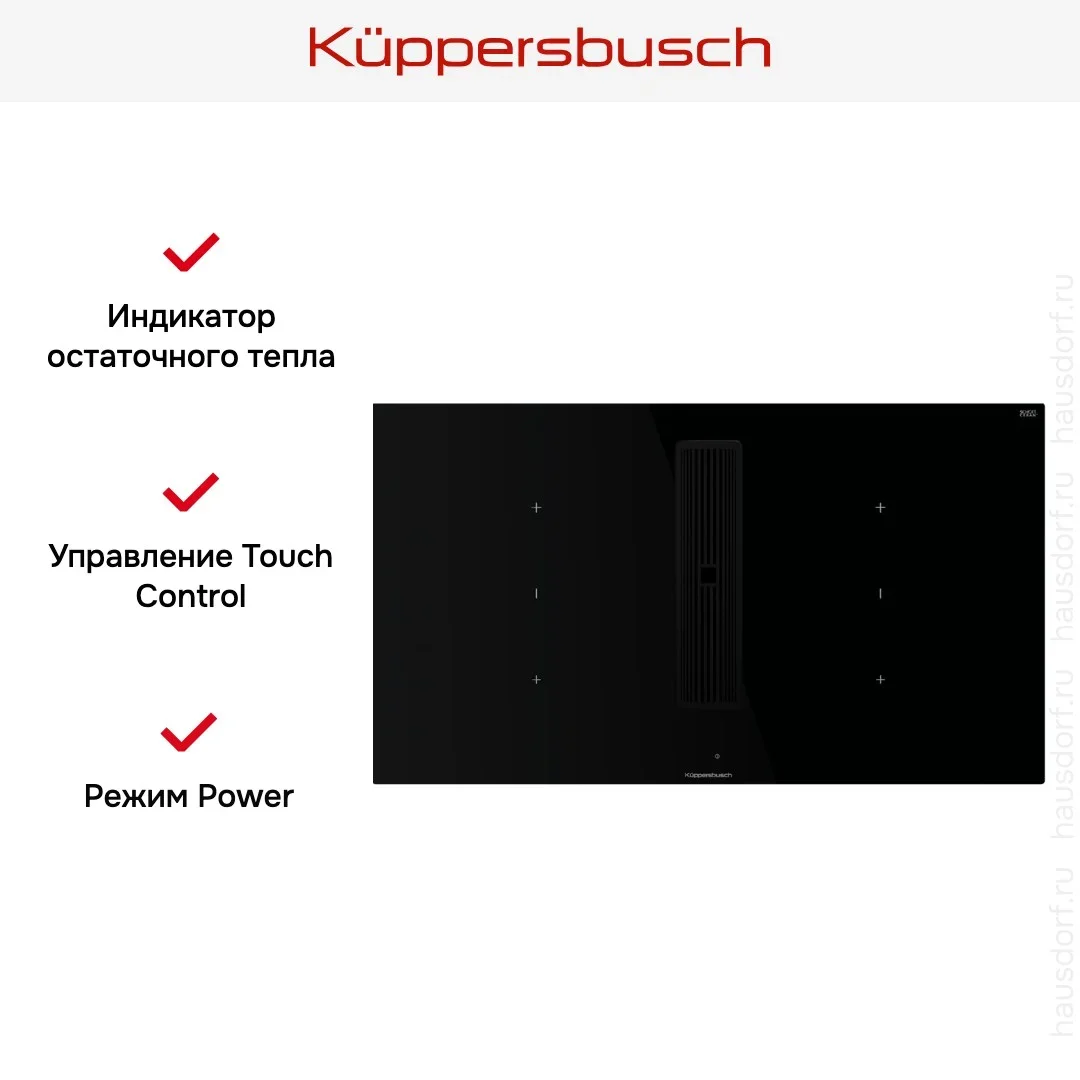 Индукционная варочная панель с вытяжкой Kuppersbusch KMI 9350.0 SR Black Velvet — варочная панель премиального сегмента, немецкого производства, сочетающая надёжность и передовые технологии Küppersbusch.