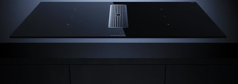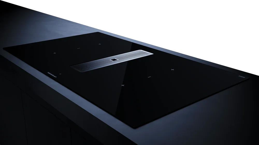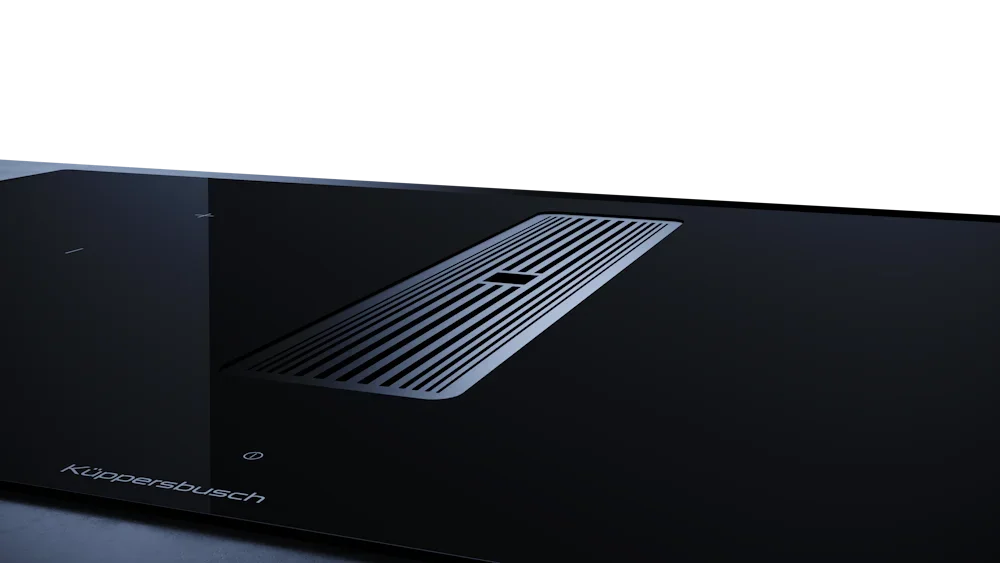 Индукционная варочная панель с вытяжкой Kuppersbusch KMI 9350.0 SR Silver Chrome — флагманская модель в линейке Küppersbusch (немецкого производства), варочная панель класса люкс.