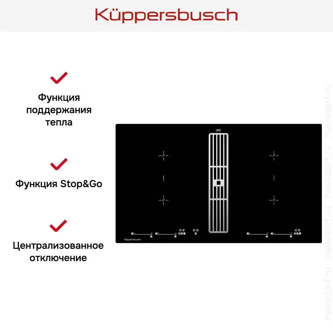 Варочная панель с вытяжкой Kuppersbusch KMI 9800.0 SR Stainless Steel — варочная панель высшего класса, немецкого производства, сочетающая надёжность и передовые технологии Küppersbusch.
