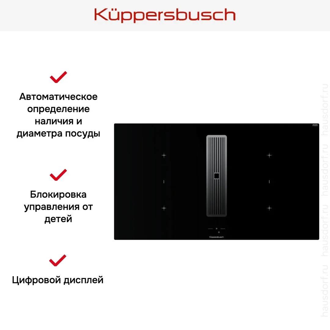 Индукционная варочная поверхность с вытяжкой Kuppersbusch KMI 9850.1 SR-E Silver Chrome — варочная панель премиум-класса, немецкого производства, сочетающая надёжность и передовые технологии Küppersbusch.