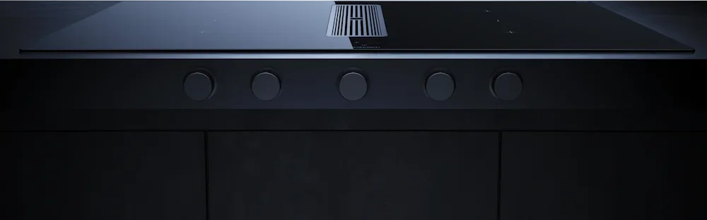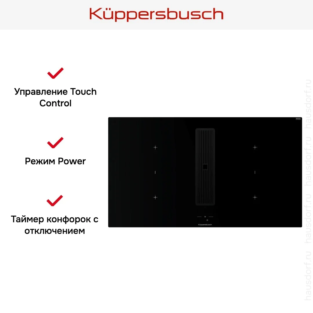 Индукционная варочная поверхность с вытяжкой Kuppersbusch KMI 9850.1 SR-S Black Velvet — варочная панель премиум-класса от немецкого производителя Küppersbusch.