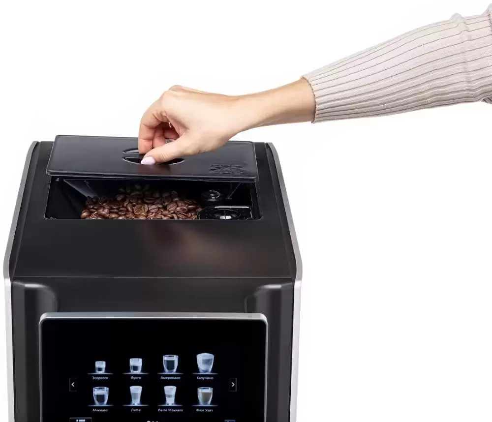 | Дополнительные параметры | Тип TFT-дисплея: HD с диагональю 7“ Регулируемый объем напитка: 20-250 мл 5 ступеней температуры кофе: 75-90°С 4 уровня помола кофе Емкость для воды заполняется сзади |