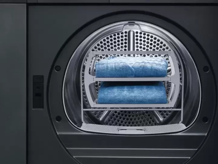 Оснащена сушка махровых тканей, сушка в корзине, легкая сушка и самоочистка конденсатора.