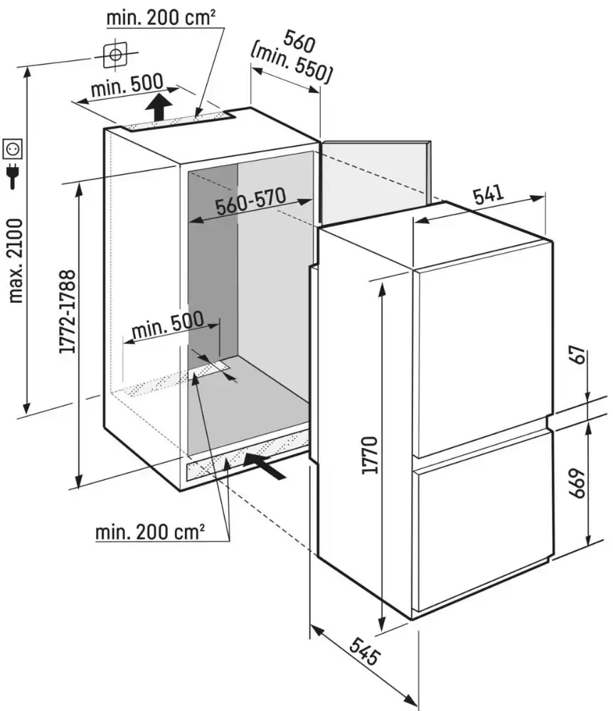 Тип: встраиваемый. Вид: холодильник с морозильником.