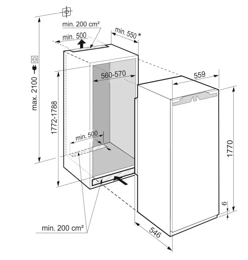 Тип: встраиваемый. Вид: холодильник без морозильника.