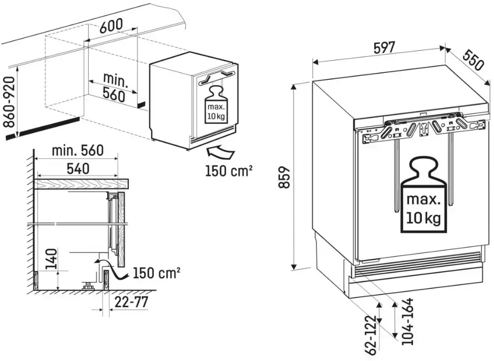 | Дополнительные параметры | Управление: Minimal UI Ступенчатая регулировка полок на двери по высоте Встраивание под столешницу Максимальный вес фасада: 10 кг Вентиляция через цоколь |