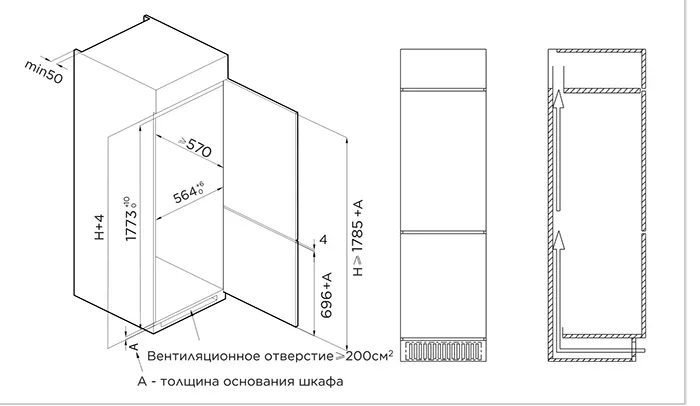 Тип: встраиваемый. Вид: холодильник с морозильником.
