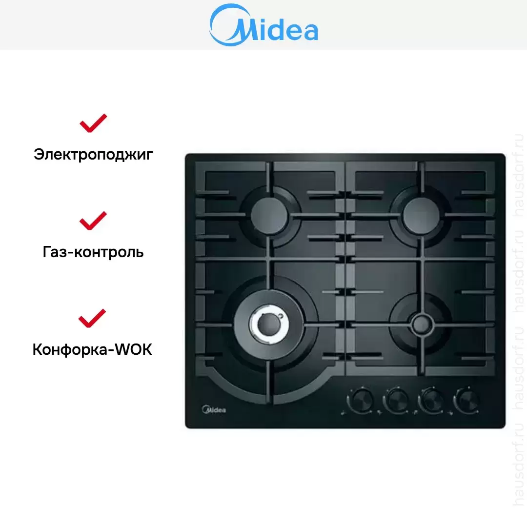 Варочная панель Midea MG649TGB — варочная панель премиального сегмента, сочетающая надёжность и передовые технологии Midea.