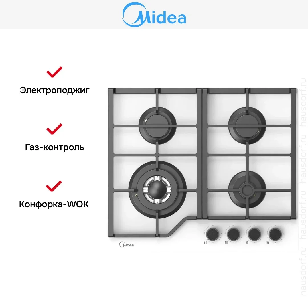 Варочная панель Midea MG697TGW — флагманская модель в линейке Midea, варочная панель класса люкс.