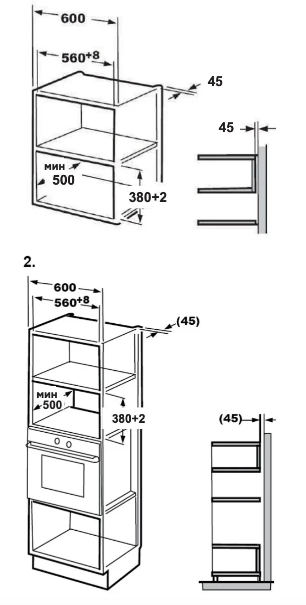 | Размеры ниши для встраивания (ВxШxГ) (cм) | 38-38.2х56-56.8х50 |