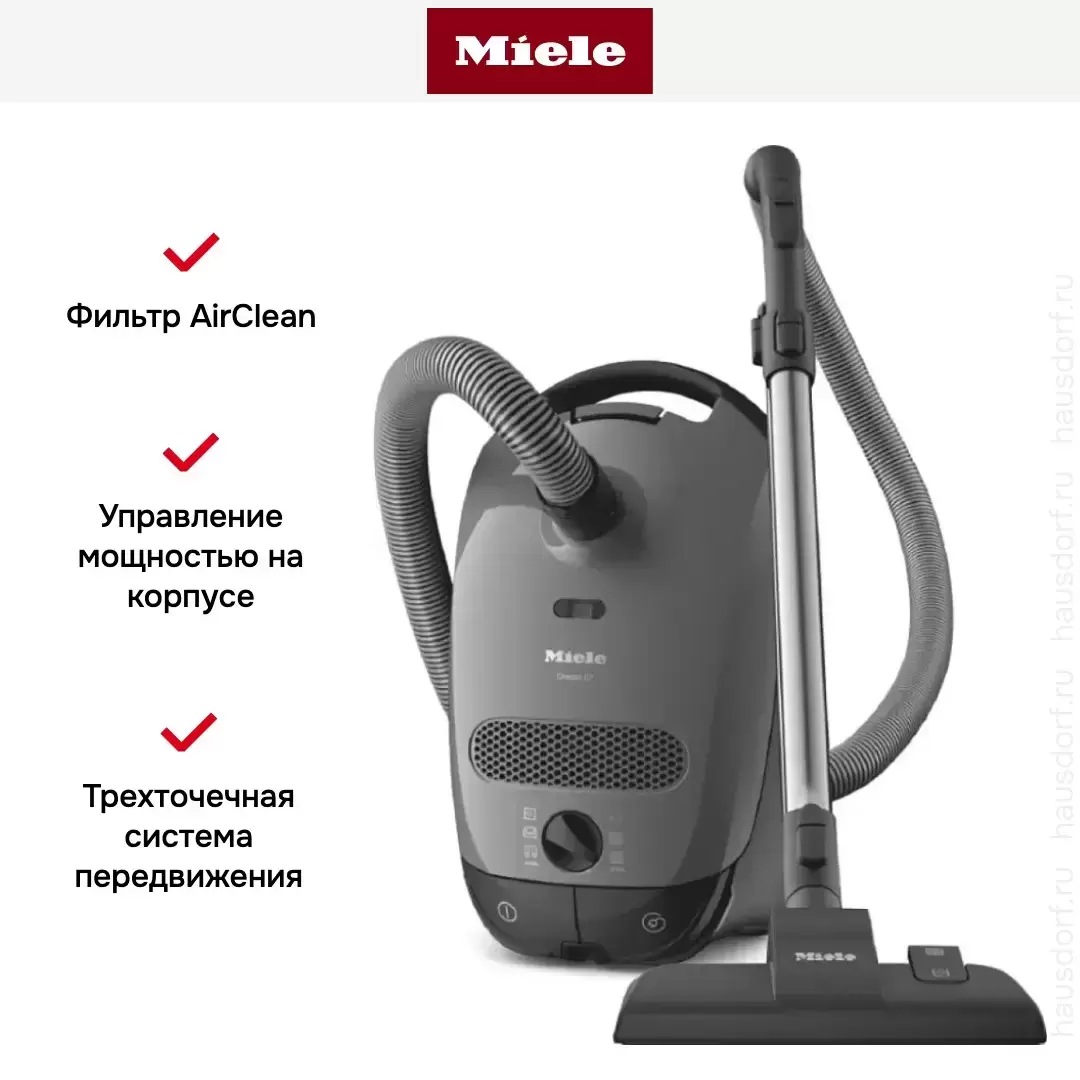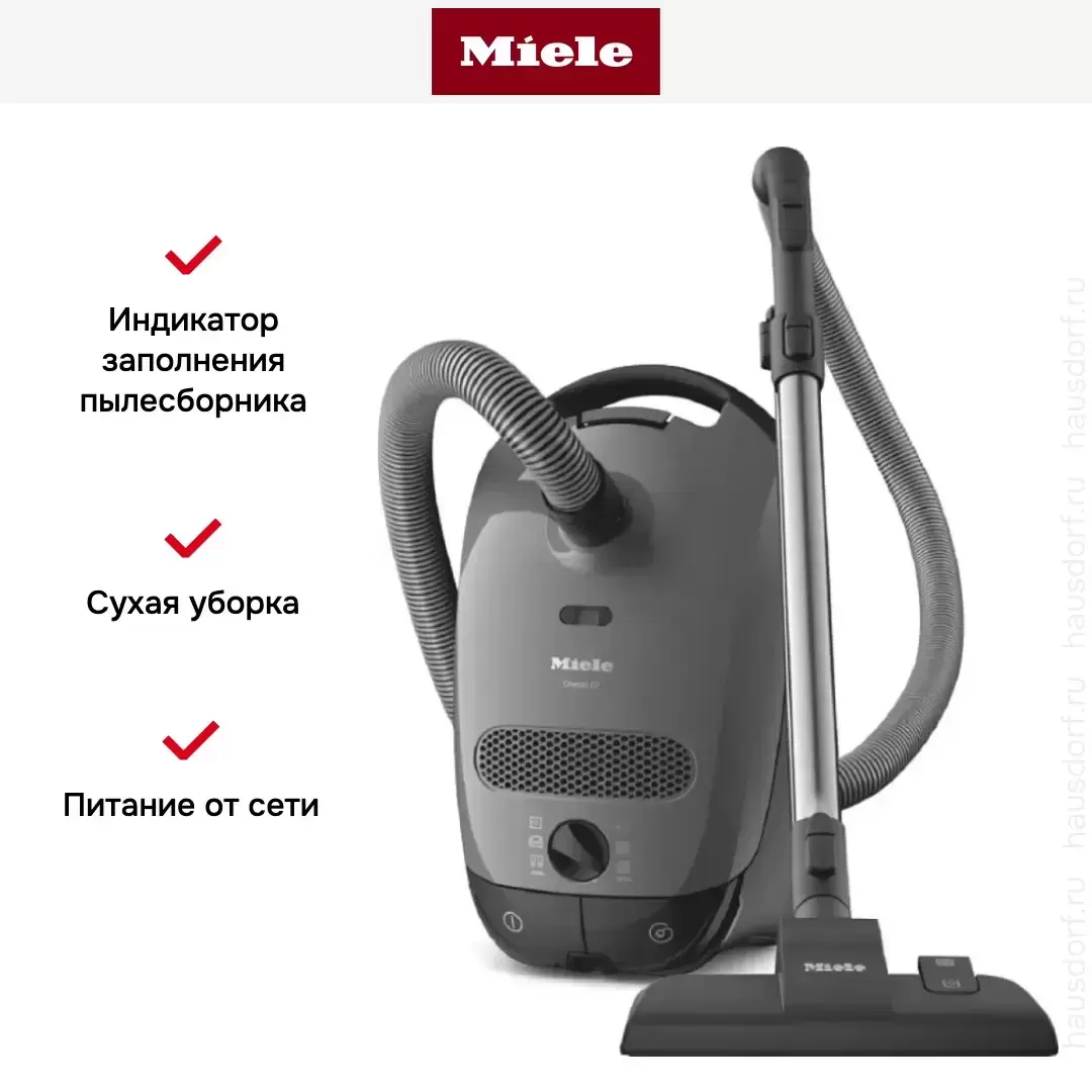Пылесос Miele Classic C1 SBAF5 Junior PowerLine серый — флагманская модель в линейке Miele (немецкого производства), пылесос класса люкс.