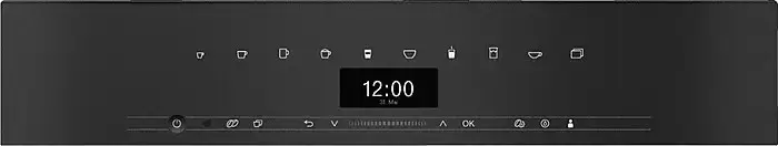 Сенсорный дисплей DirectSensor. 4 профиля пользователей. Wi-Fi Miele@home. AutoDescale. BrilliantLight подсветка чашки. Юбилейное двухцветное оформление фасада (обсидиан + графит) с серебряной надписью «125» — видно на всей передней панели.