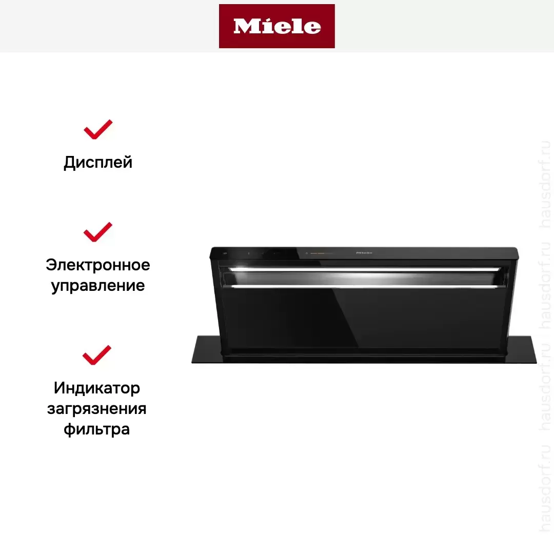 Габариты 900×105×460 мм. Воздуховод в пол. Шум: 48 дБ на 1-й, 65 дБ на максимуме. Класс A. Сборка Miele (Германия). Brera — авторизованный дилер: гарантия 2 года, доставка и подключение Miele-мастером в Москве включены.