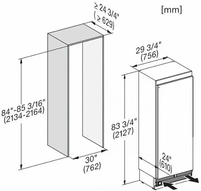 Габариты ниши MasterCool 212 см. Полностью встраиваемый. Подключение к водопроводу для IceMaker. Класс энергоэффективности B. Сборка Miele (Германия). Brera — авторизованный дилер: гарантия 2 года, доставка и подключение Miele-мастером в Москве включены.
