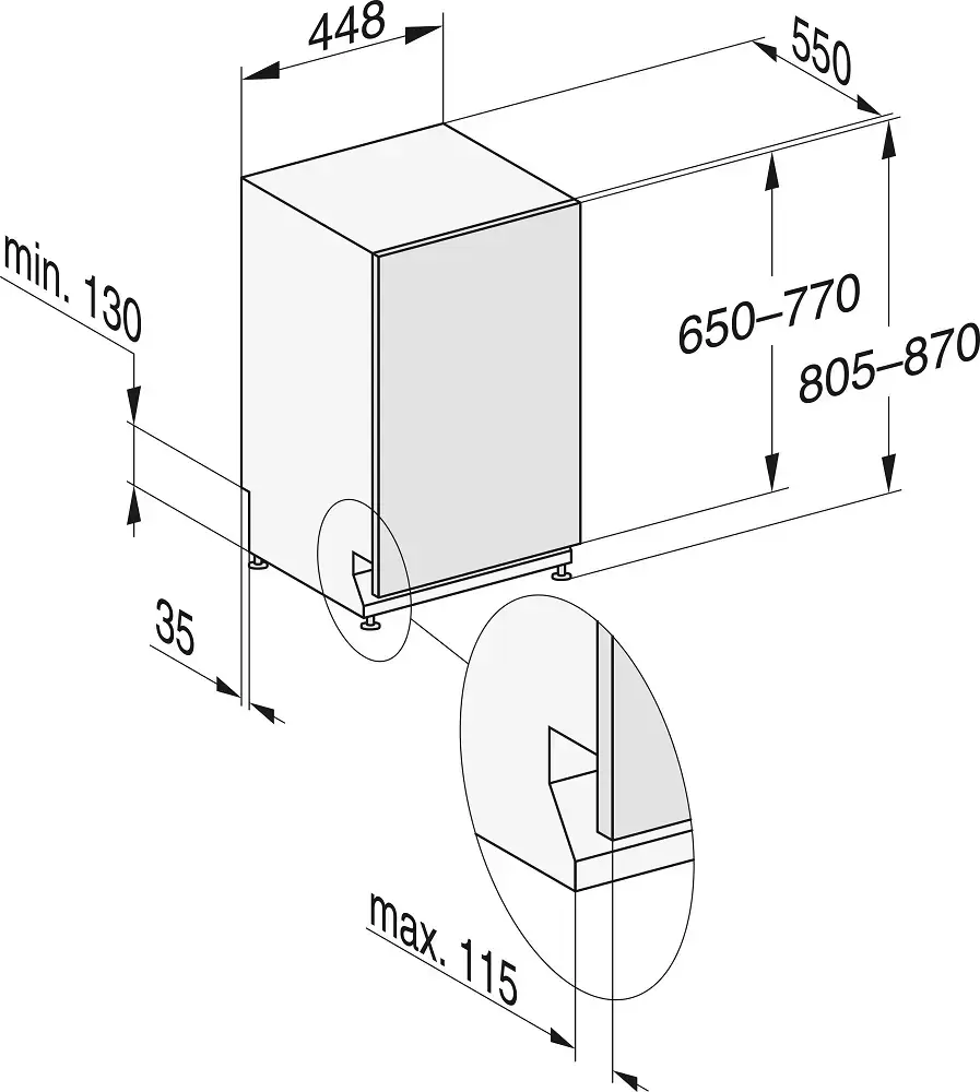 | Размеры ниши для встраивания (ВхШхГ) (см) | 80.5-87х45х55 |