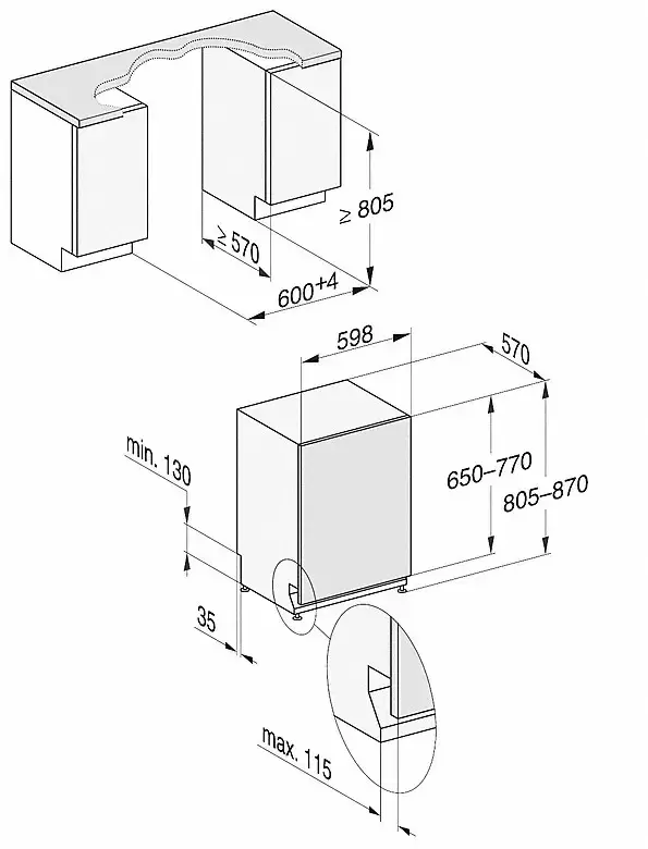 | Размеры ниши для встраивания (ВхШхГ) (см) | 80.5-87х60х57 |