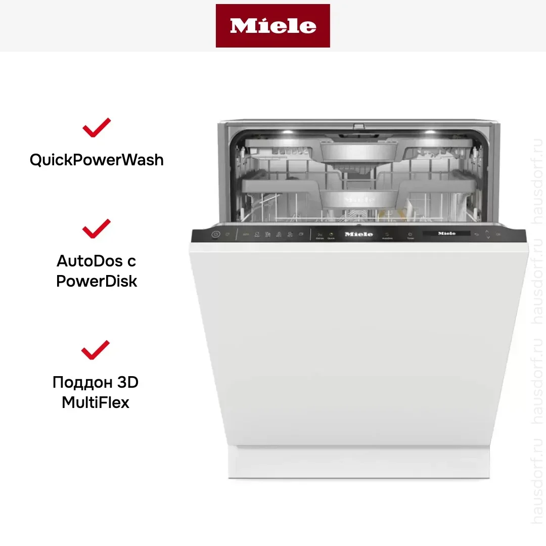 Miele G 7790 SCVi AutoDos K2O — полностью встраиваемая посудомоечная машина Generation 7000 с системой K2O (двойное автоматическое дозирование моющего и ополаскивателя). Флагманская модель в линейке AutoDos K2O без XXL — для стандартной высоты кухни при максимальной автоматизации ухода. Класс энергоэффективности A, уровень шума 41 дБ.