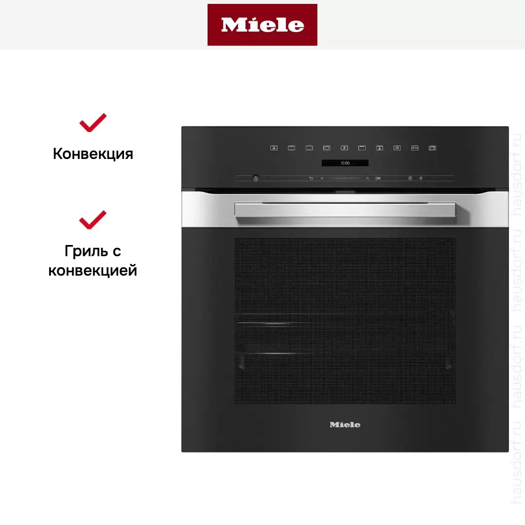 Сенсорная панель DirectSensor с сегментным дисплеем. Проводной термощуп с разъёмом в камере. LED BrilliantLight, доводчик SoftClose. FlexiClip-направляющие. CleanSteel — сталь с антибактериальным покрытием, не остаётся отпечатков пальцев. Классическая горизонтальная ручка. Без Wi-Fi и Miele@home.
