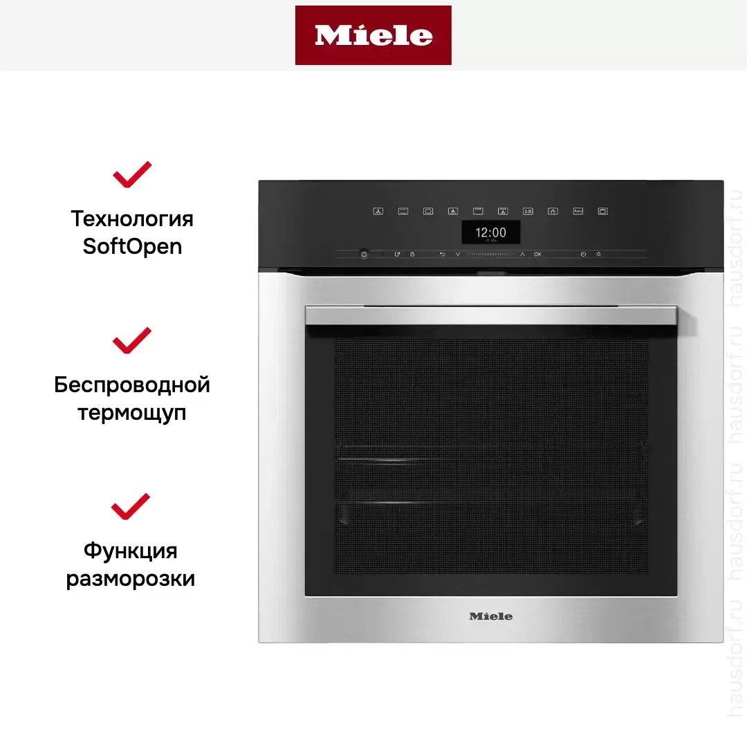 Сенсорный TFT-дисплей M Touch с интуитивным интерфейсом. Проводной термощуп с разъёмом в камере. LED BrilliantLight, доводчик SoftClose, FlexiClip-направляющие. CleanSteel — сталь с антибактериальным покрытием против отпечатков пальцев. Классическая горизонтальная ручка. Управление с передней панели без Wi-Fi и Miele@home.